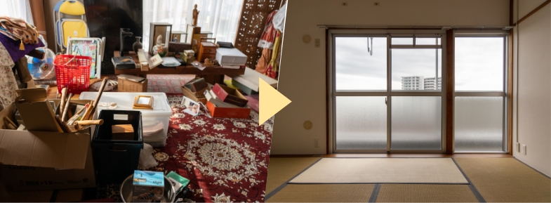 ワンルームのお部屋から戸建て物件まで、どのような環境でも迅速に片付けます。